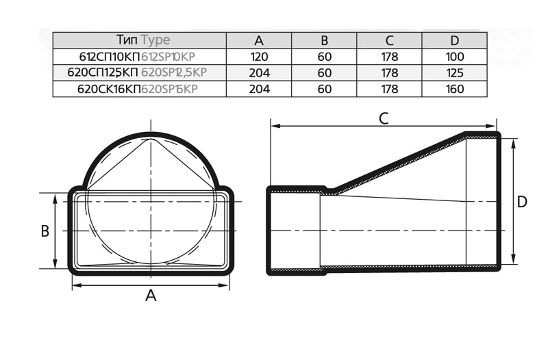 Соединитель плоский/круглый канал 620СП12,5КП