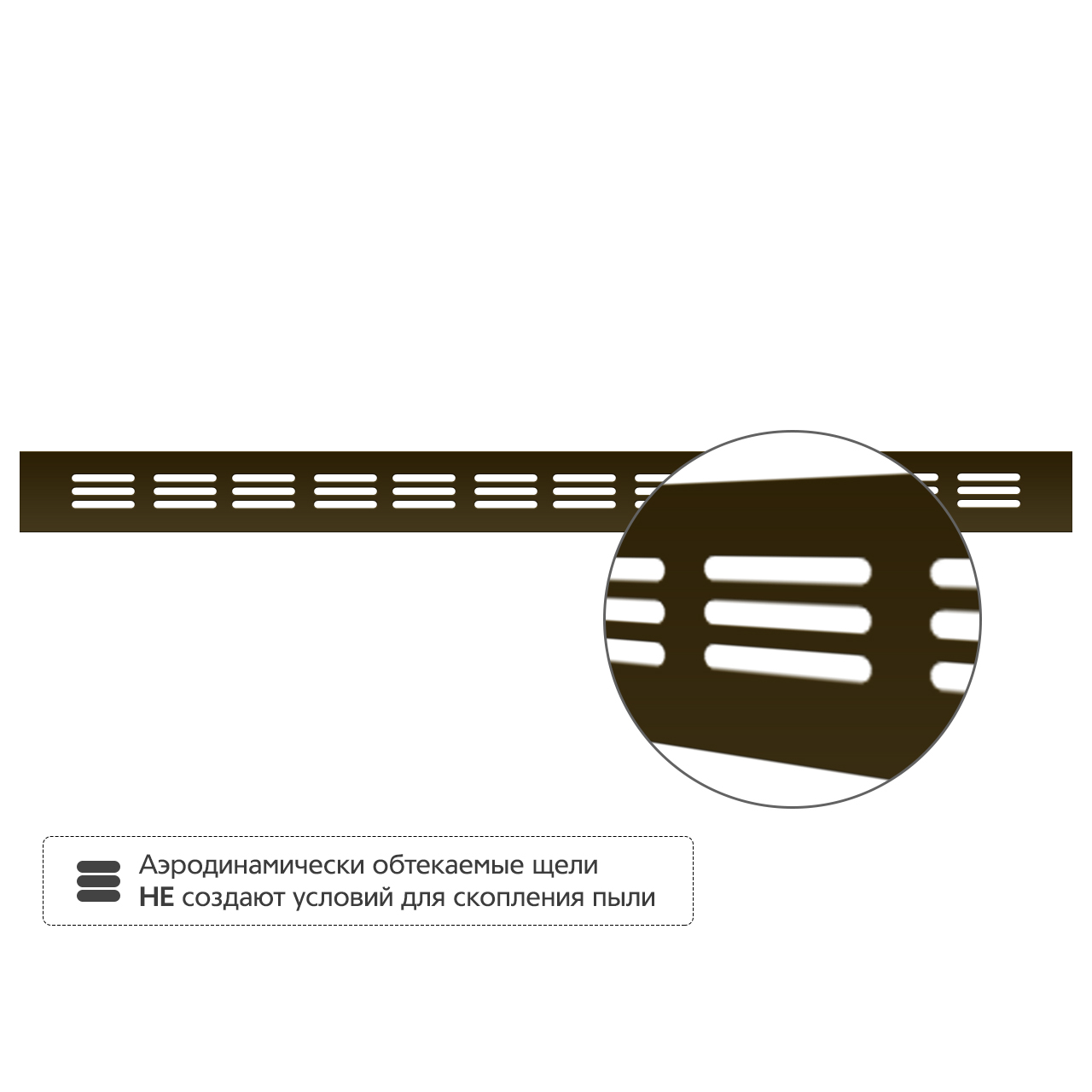 • Аэродинамически обтекаемые щели не создают условий для скопления пыли