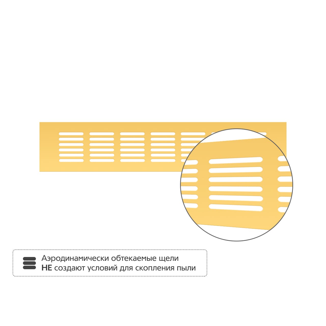 • Аэродинамически обтекаемые щели не создают условий для скопления пыли