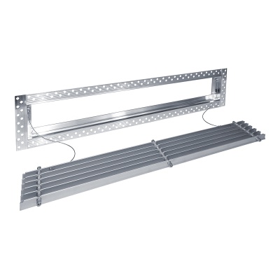 Данная решетка подходит для монтажа на любую поверхность под финишную отделку. Рама оснащена «полкой» 1,9 мм и рифлеными краями для большей адгезии финишного материала – шпатлевки, цемента. Решетка имеет съемную центральную часть с декоративным экраном. Она крепится к корпусу прочными металлическими тросиками, легко снимается для очистки и удобного обслуживания.