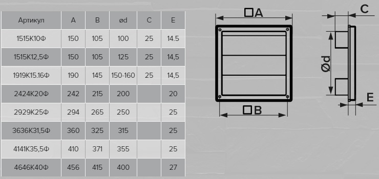 • Вентиляционная решетка самозакрывающаяся ЭРА 1515К10Ф