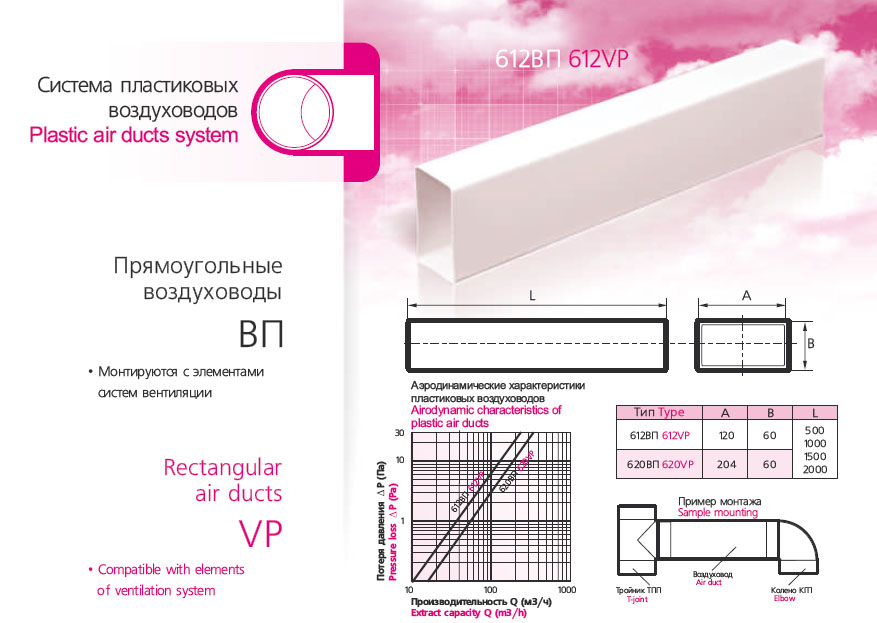 Воздуховод прямоугольный ПВХ 60х204, L=2м