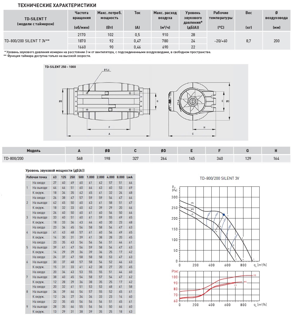 Вентиляторы серии TD-SILENT T - с диагональными лопатками, односкоростные с таймером, изготавливаются из