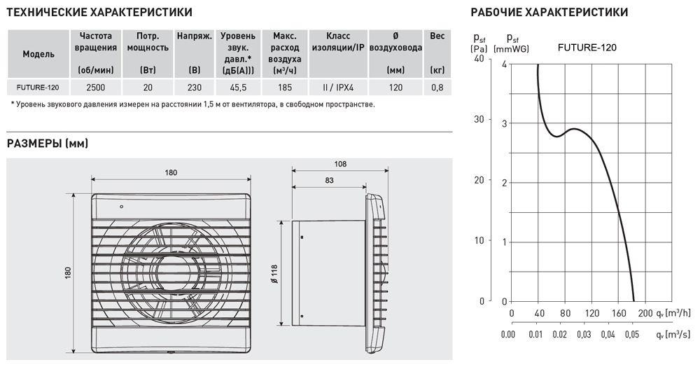 Вентилятор предназначен для установки в ванных комнатах, санузлах, жилых,