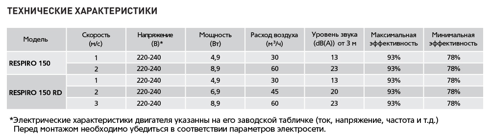 • Проветриватель с рекуперацией тепла Respiro 150